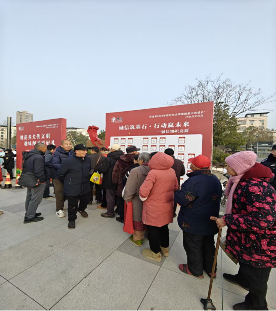 活動(dòng)聚焦“普及誠信知識(shí)、強(qiáng)化誠信意識(shí)、踐行誠信理念”目標(biāo),創(chuàng)新采用線下“隨機(jī)抽題+現(xiàn)場作答+即時(shí)講解”的形式增強(qiáng)體驗(yàn)感。精心設(shè)置單選題、情景判斷題等題型,內(nèi)容涵蓋誠信相關(guān)法律法規(guī)、社會(huì)信用體系建設(shè)政策、經(jīng)典誠信故事、日常誠信行為規(guī)范等多個(gè)方面。現(xiàn)場群眾通過抽號(hào)答題、互動(dòng)競猜的方式,在輕松氛圍中學(xué)習(xí)誠信知識(shí)。工作人員對(duì)題目中涉及的法律法規(guī)和信用知識(shí)進(jìn)行現(xiàn)場解讀,實(shí)現(xiàn)知識(shí)普及與實(shí)踐指導(dǎo)有機(jī)結(jié)合?;顒?dòng)根據(jù)題目難易程度,對(duì)回答正確的老百姓發(fā)放抽紙、洗衣液、香皂等日常生活用品500余份?;顒?dòng)現(xiàn)場還配套發(fā)放《誠信建設(shè)宣傳手冊(cè)》等資料500余份,幫助群眾進(jìn)一步理解“守信激勵(lì)、失信懲戒”的社會(huì)信用規(guī)則。